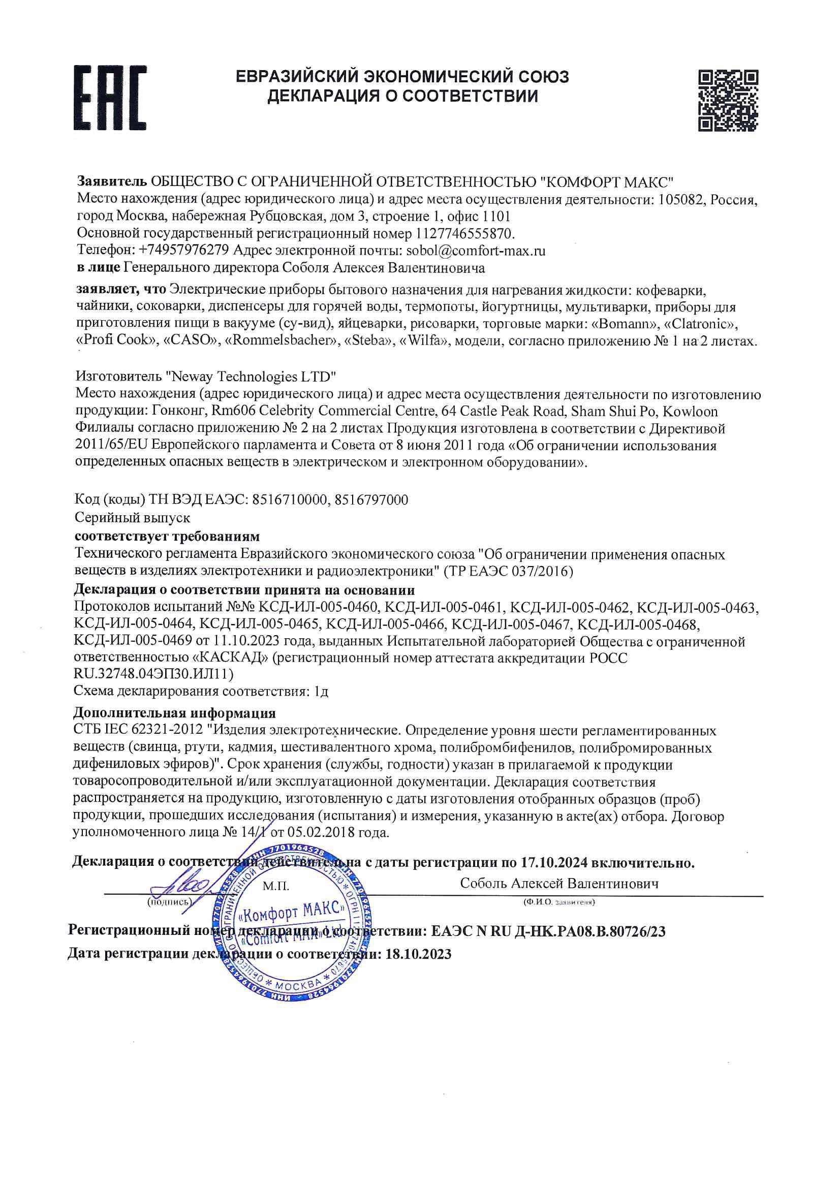 ЕАЭС N RU Д-HK.РА08.В.80726/23 | 17.10.2023 | 16.10.2024 |
