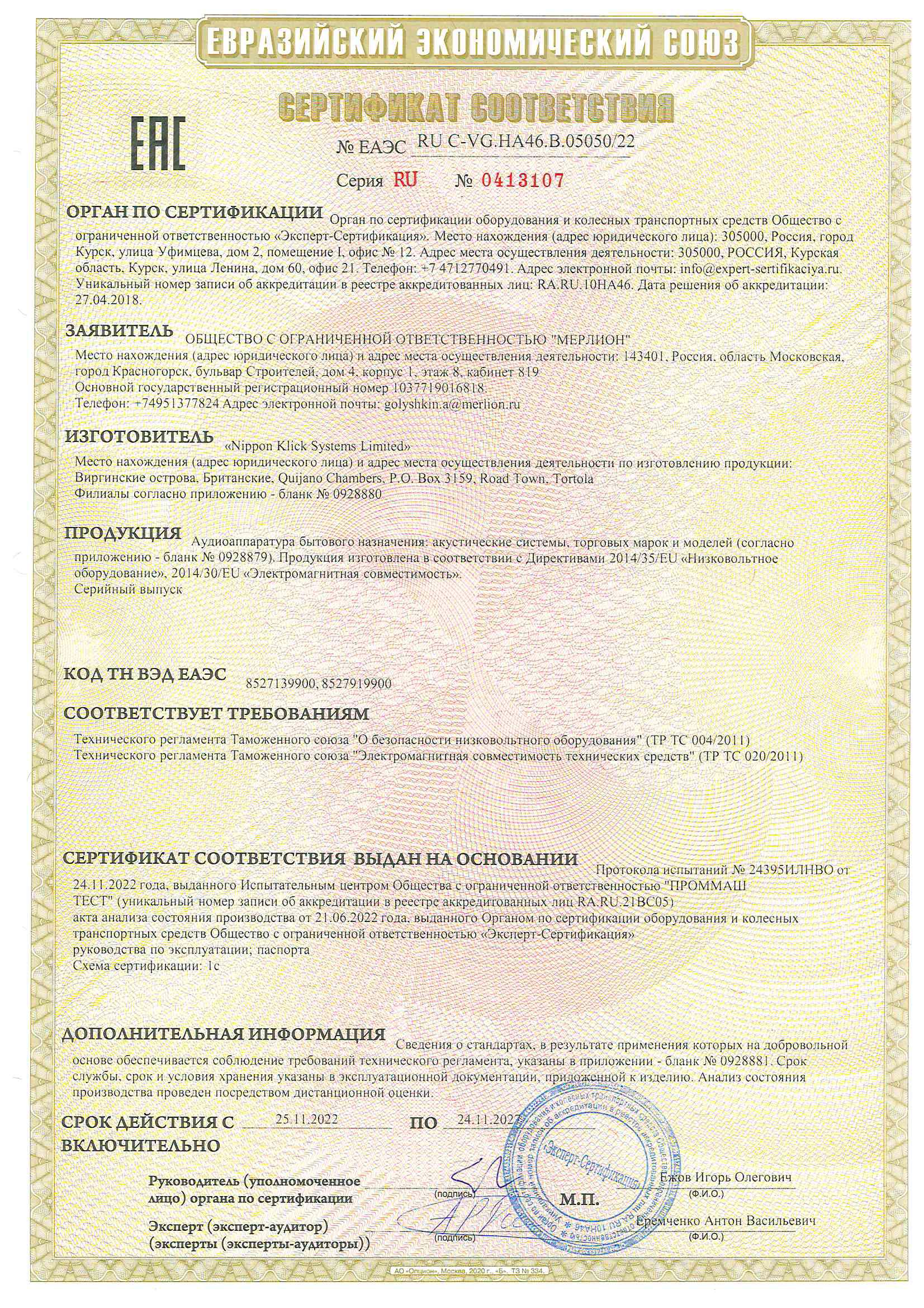 ЕАЭС | 24.11.2022 | 23.11.2027 |