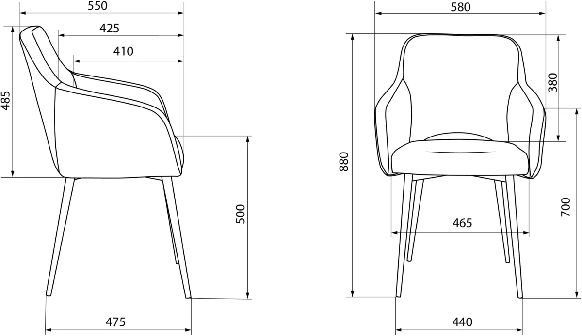 Высота кресла/стула MIN