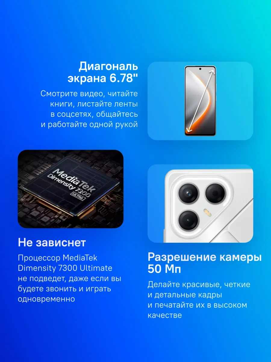 Смартфон Tecno POVA 7 5G 256Gb 8Gb серебристый моноблок 3G 4G 6.8" 1080x2460 Android 14 50Mpix 802.11 a/b/g/n/ac NFC GPS GSM900/1800 Protect | НИП | 11.02.2025 | 30.12.2035 |
