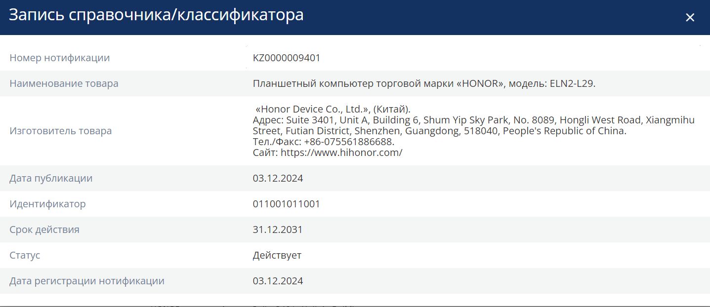 Планшет Honor Pad X9a ELN2-L29 685 (2.0) 8C RAM6Gb ROM128Gb 11.5" IPS (5301AMVJ)