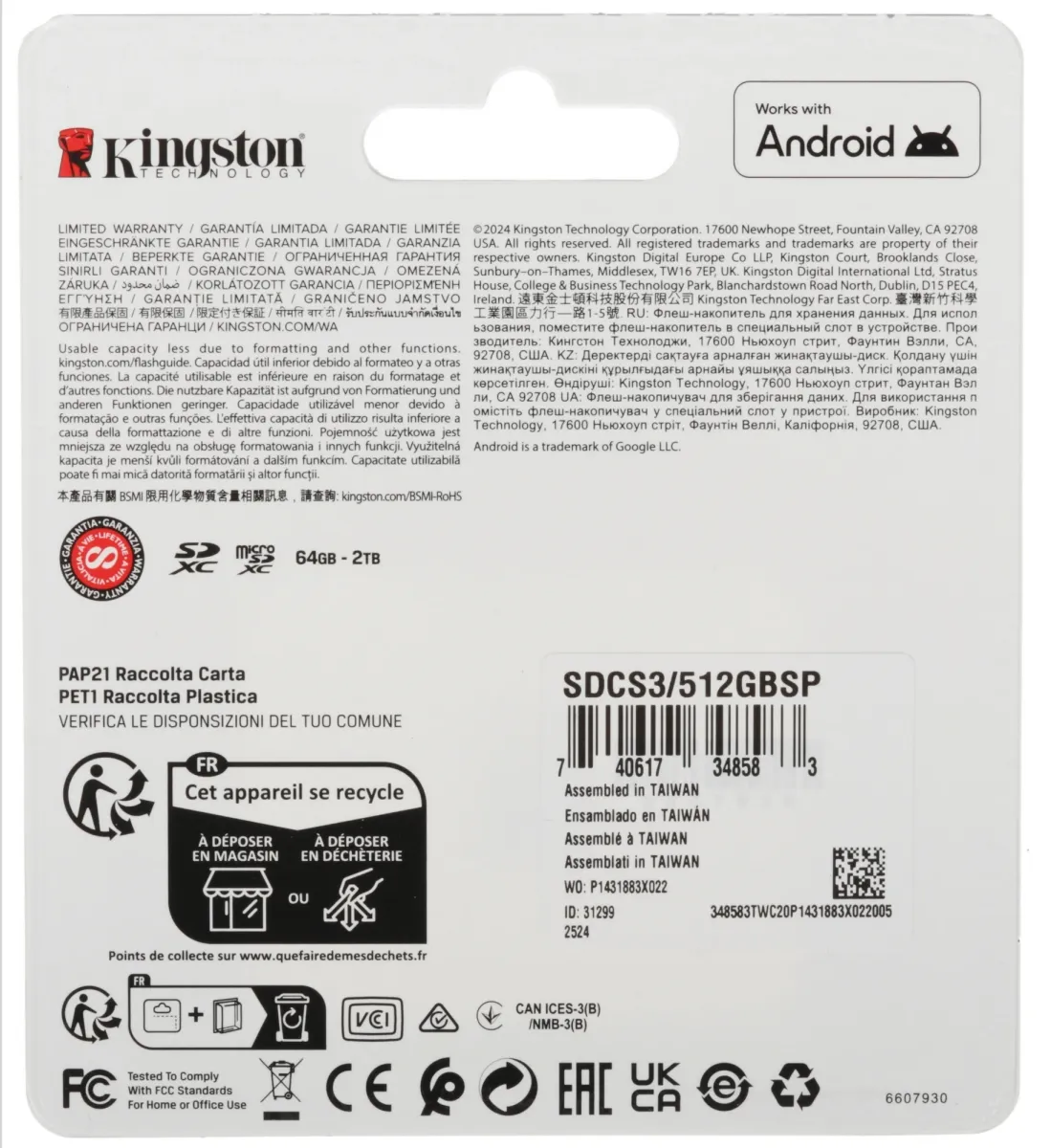 Флеш карта microSDXC 512GB Kingston SDCS3/512GB Canvas Select Plus + adapter (SDCS3/512GB)