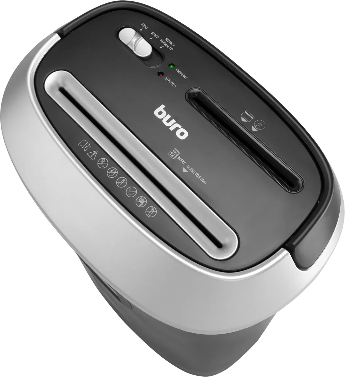Шредер Buro Office BU-S1201 черный/серебристый с автоподачей (секр.P-3) фрагменты 12лист. 25лтр. скрепки (BU-S1201)
