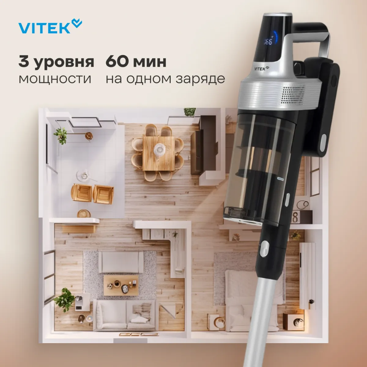 LED-дисплей, легко очищаемый пылесборник, подсветка зоны уборки, прорезиненные колеса -