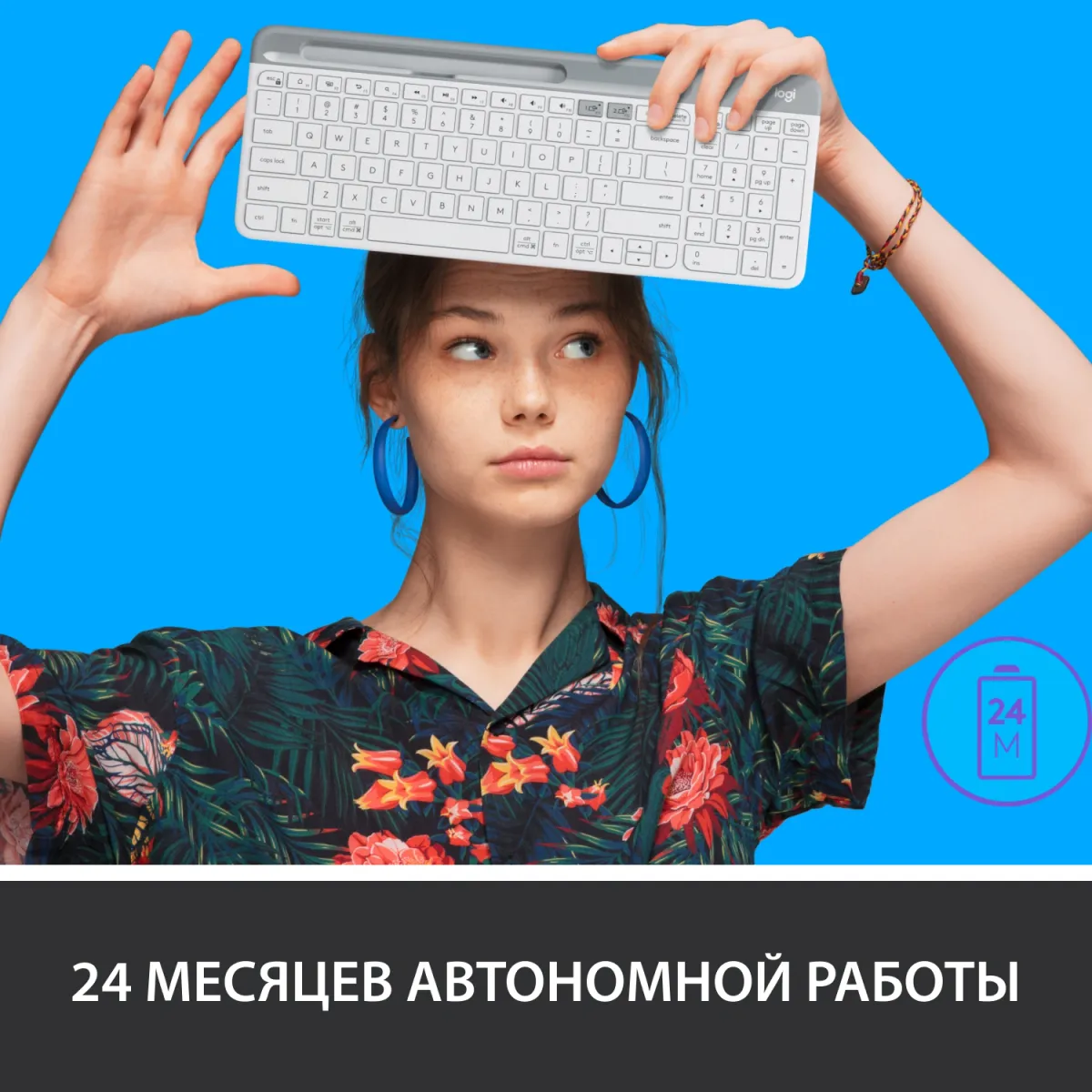 Клавиатура Logitech K580 белый/серебристый USB беспроводная BT/Radio slim (920-009209)