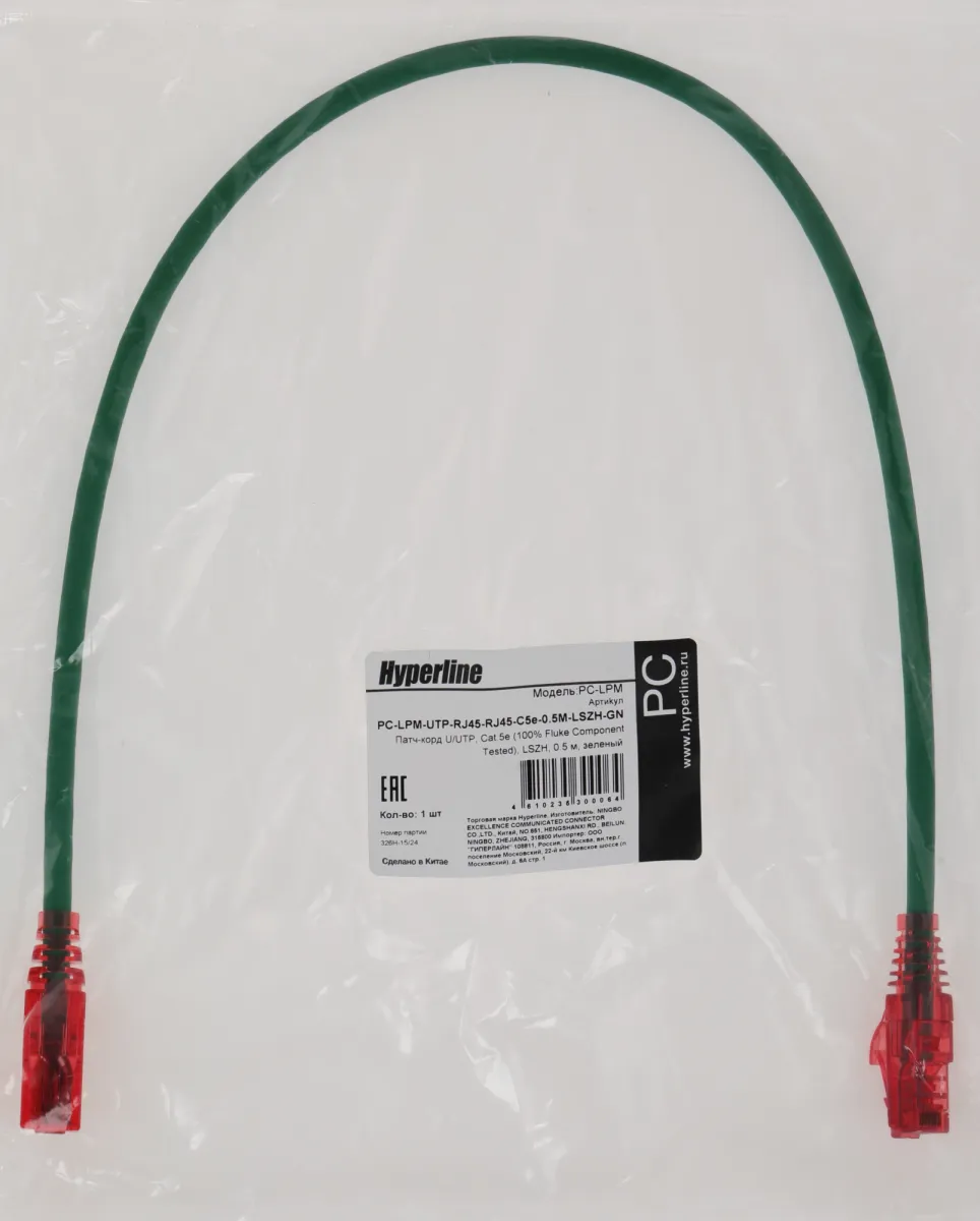 Патч-корд Hyperline PC-LPM-UTP-RJ45-RJ45-C5e-0.5M-LSZH-GN UTP RJ-45 вил.-вилка RJ-45 кат.5E (ML1795727)