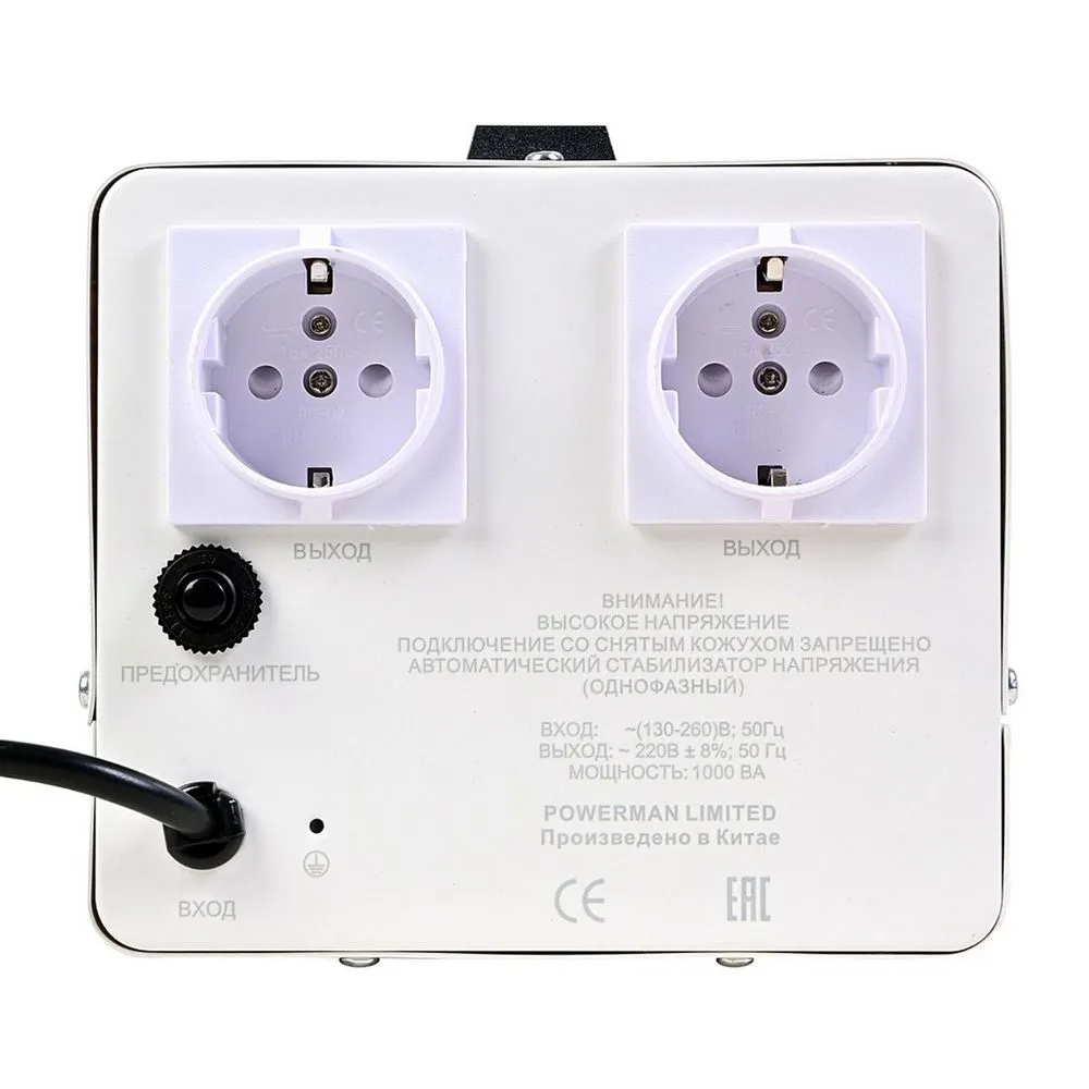 Отключение нагрузки при выходном напряжении выше 255В; при снижении напряжения - автоматическое подключение. Отключение нагрузки при выходном напряжении ниже 180В; при повышении напряжения - автоматическое подключение. Отключение нагрузки при температуре. -