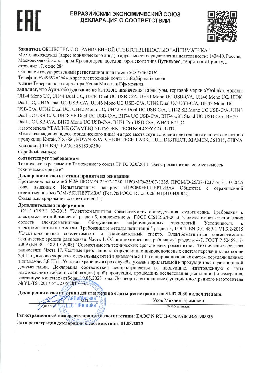 ЕАЭС N RU Д-CN.РА06.В.61794/25 | 31.07.2025 | 30.07.2030 |
