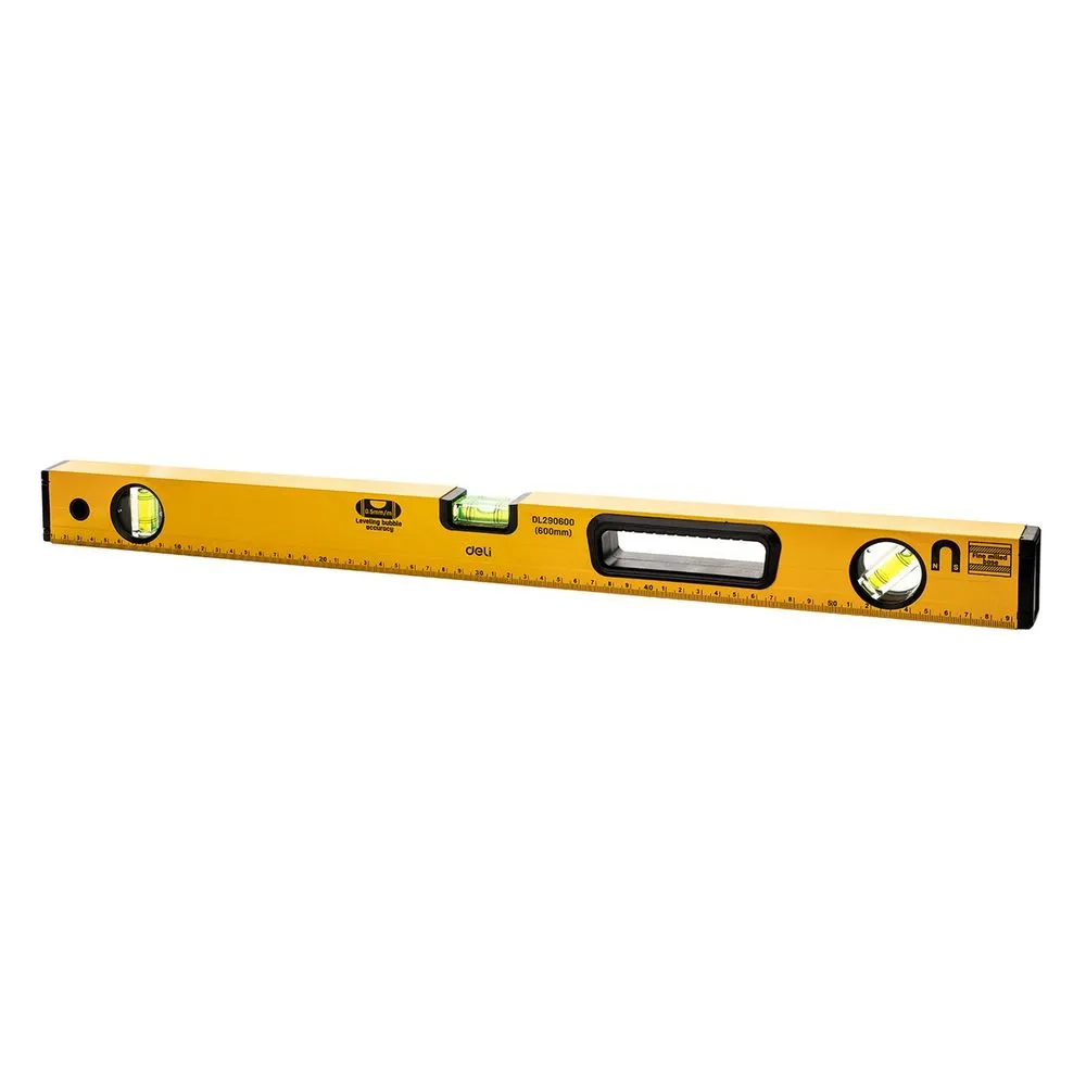 Строительный уровень DELI DL290600 600 мм 98293 используется для проведения измерения отклонений вертикальных и горизонтальных поверхностей в процессе проведения ремонтных и монтажных работ. Инструмент изготовлен из качественного алюминия, благодаря чему -