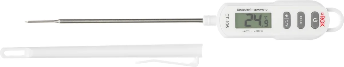 Термометр цифровой RGK CT-106, руководство по эксплуатации, батарея питания. -