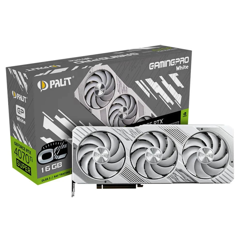 Palit RTX4070Ti SUPER GAMINGPRO WHITE OC — отличный выбор для геймеров и профессионалов, которым требуется высокая производительность и надёжность. Эта видеокарта позволит вам наслаждаться играми с высокой частотой кадров и детализацией, а также работать с графическими приложениями без задержек и проблем.