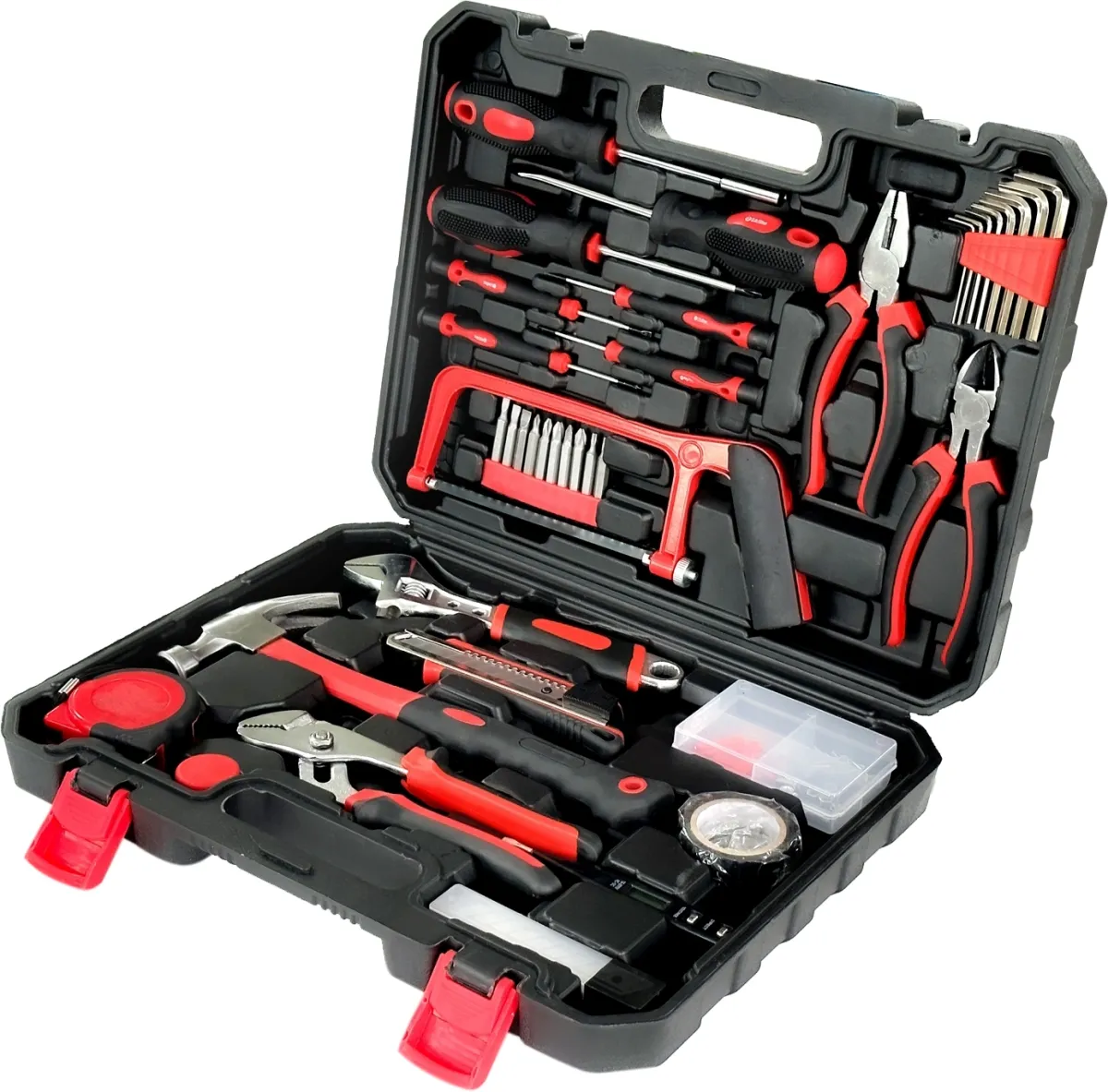 жесткий кейс, набор бит, набор крепежа, набор отверток, набор шестигранных ключей -