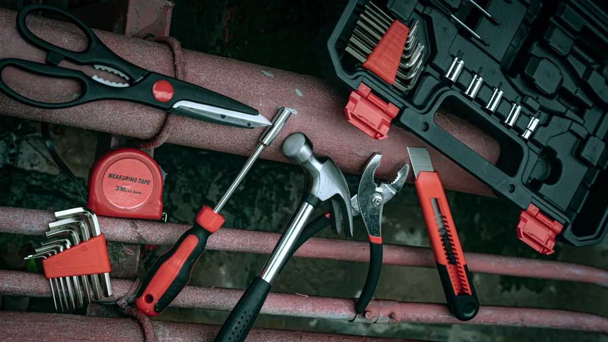 молоток, плоскогубцы, рулетка