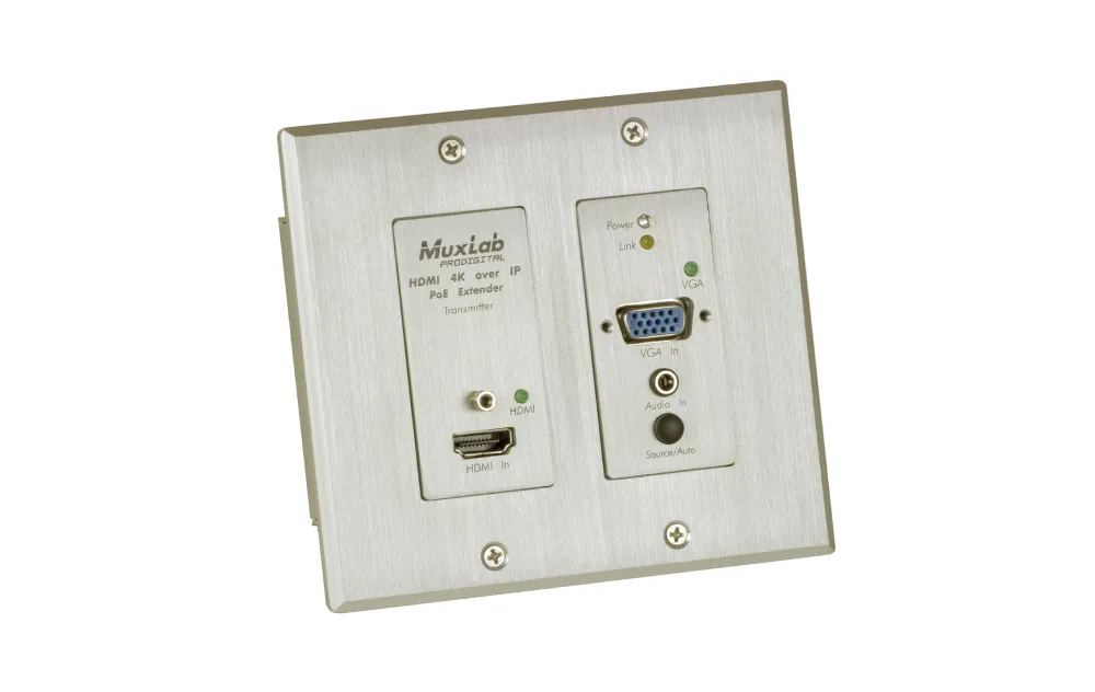 Встраиваемая панель-передатчик MuxLab [500773-TX-WH] HDMI / VGA over IP 4K PoE (500773-TX-WH)