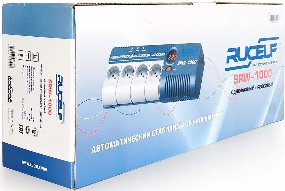 Стабилизатор напряжения Rucelf SRW-1000-D 1кВА однофазный белый