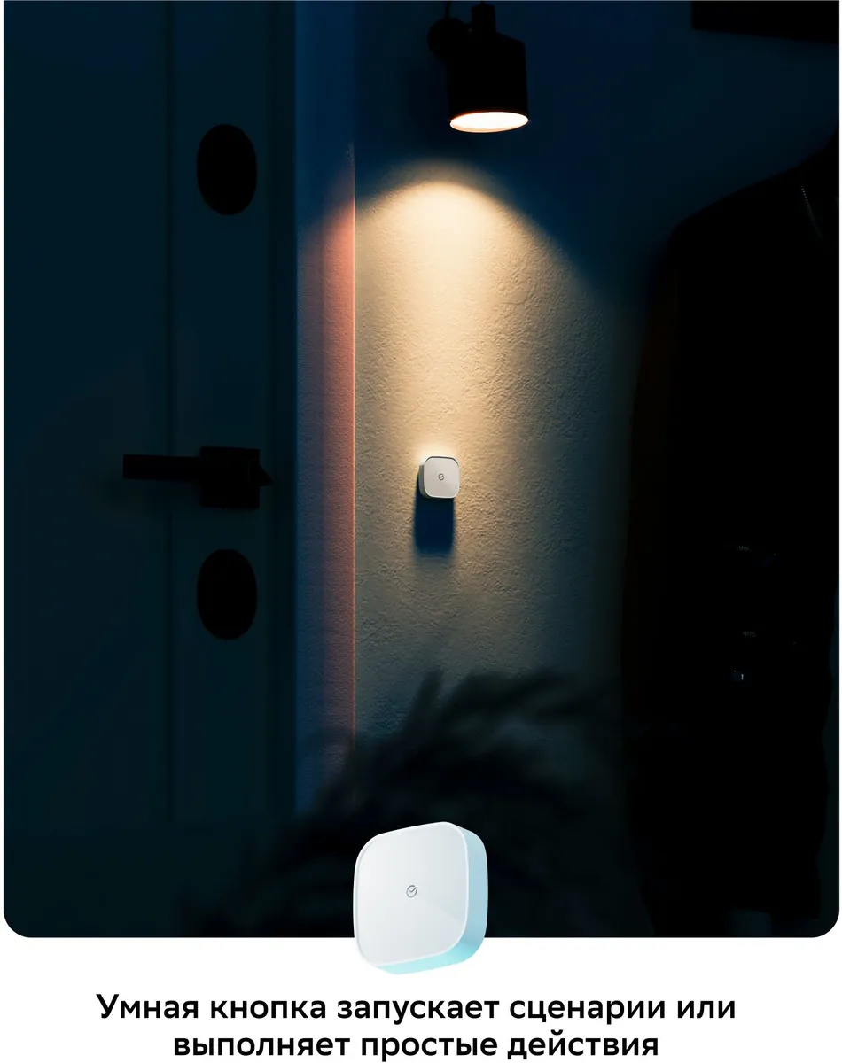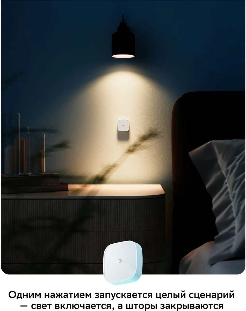 Умная кнопка Sber SBDV-00032 умеет выполнять простые действия или запускать целые сценарии. Для работы необходим центр управления умным домом - Хаб Sber (продается отдельно). -