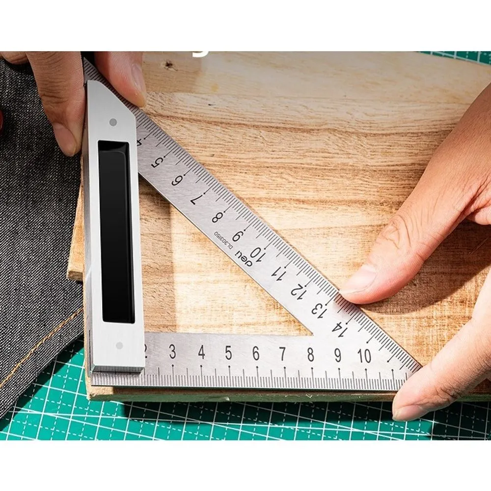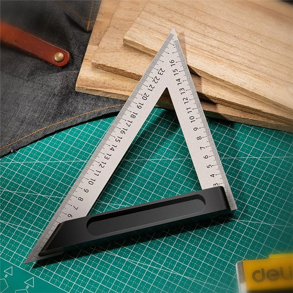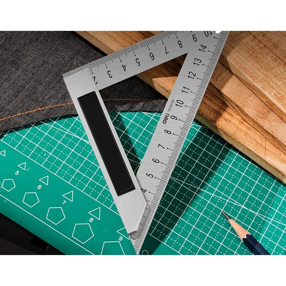 Треугольная линейка стальная Deli DL303150 150мм, нержавеющая сталь + алюминиевое основание (DL303150)