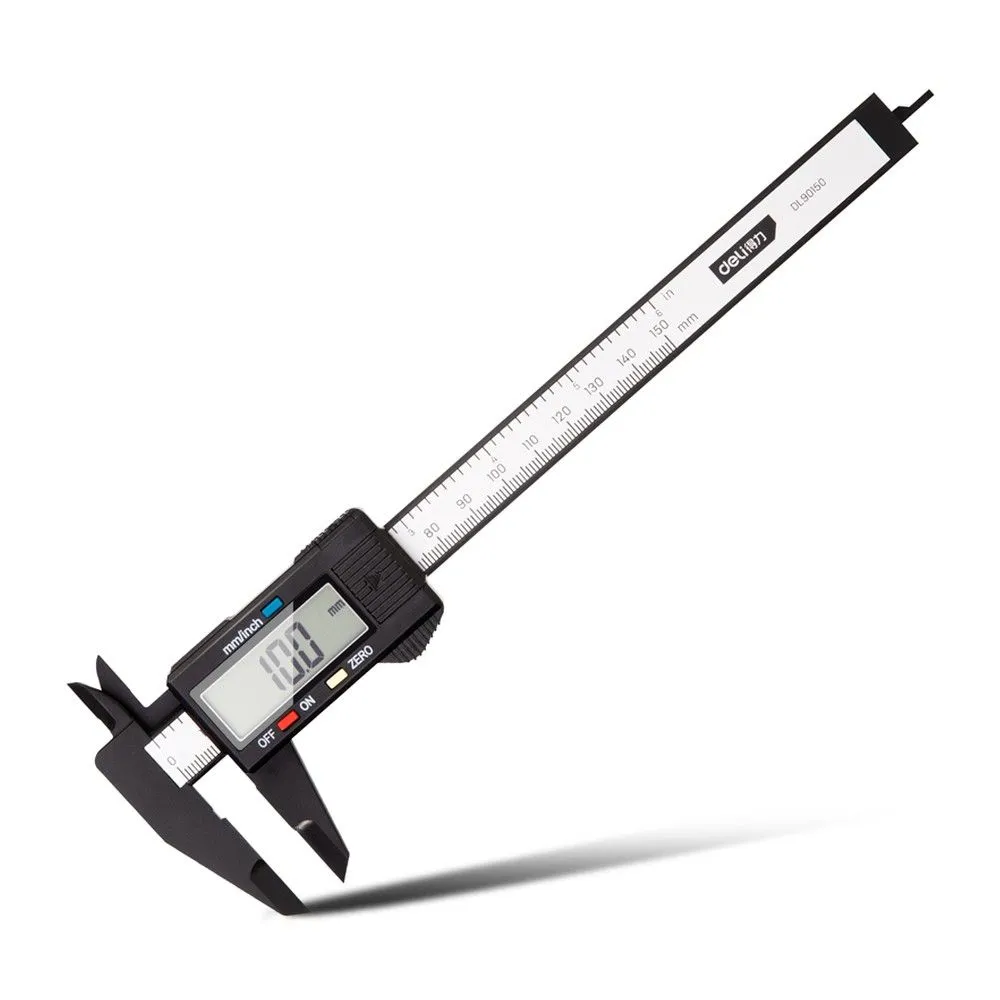 Электронный штангенциркуль Deli DL90150 150мм, метрическая/дюймовая конвертация, пластик, светодиодный дисплей (DL90150)