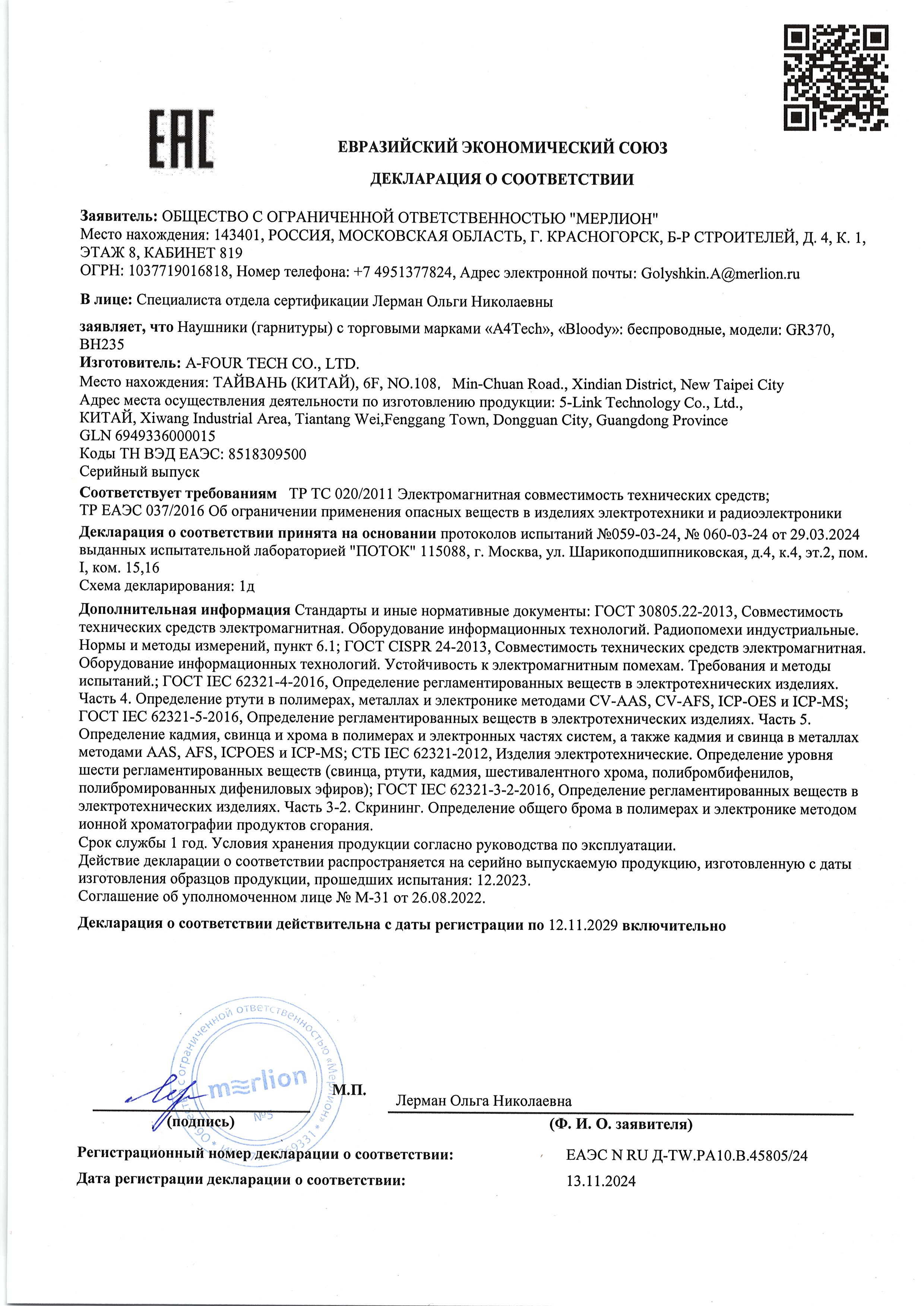 ЕАЭС N RU Д-TW.РА10.В.45805/24 | 12.11.2024 | 11.11.2029 |