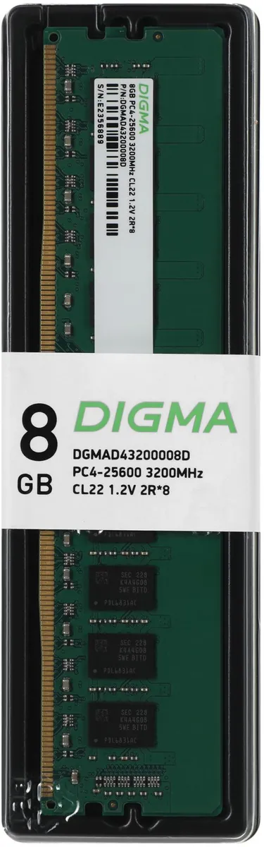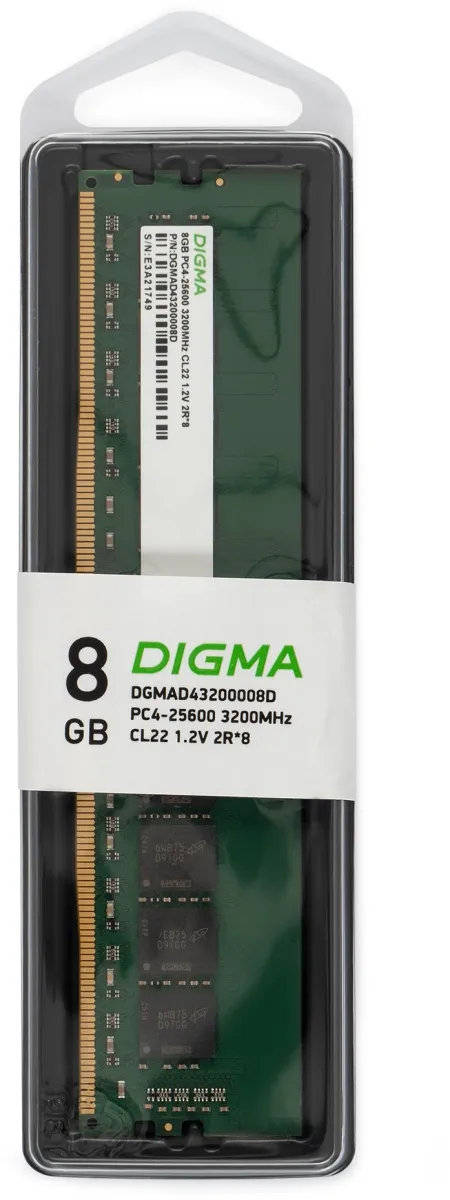 Память DDR4 8Gb 3200MHz Digma DGMAD43200008D RTL PC4-25600 CL22 DIMM 288-pin 1.2В (DGMAD43200008D)