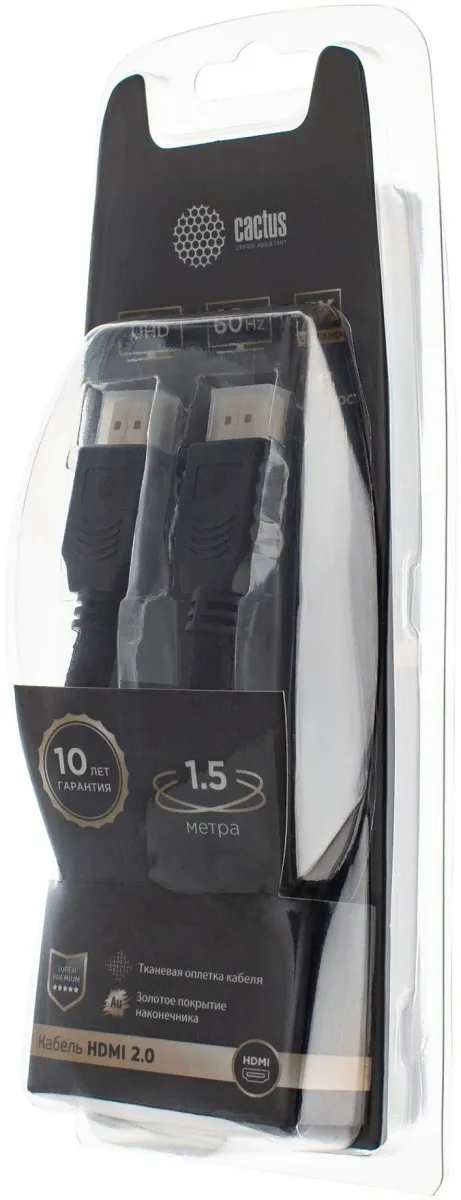 Кабель аудио-видео Cactus CS-HDMI.2-1.5 HDMI (m)/HDMI (m) 1.5м. (CS-HDMI.2-1.5)