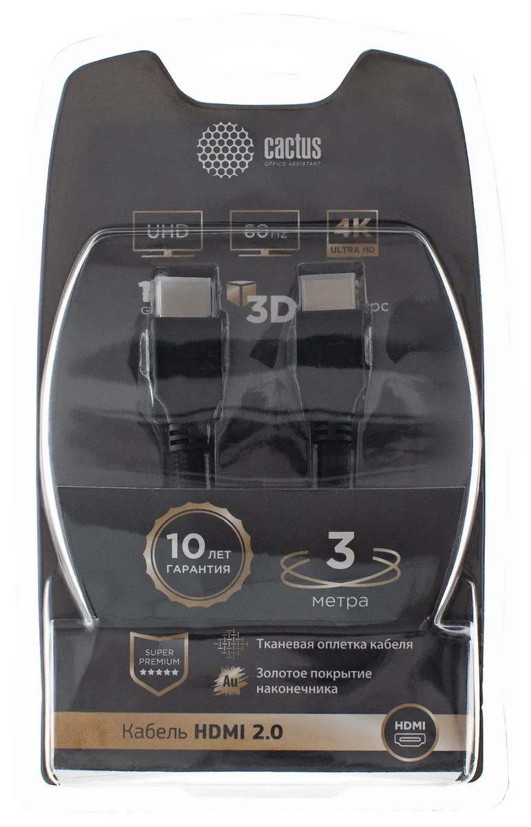 Кабель аудио-видео Cactus CS-HDMI.2-3 HDMI (m)/HDMI (m) 3м. (CS-HDMI.2-3)