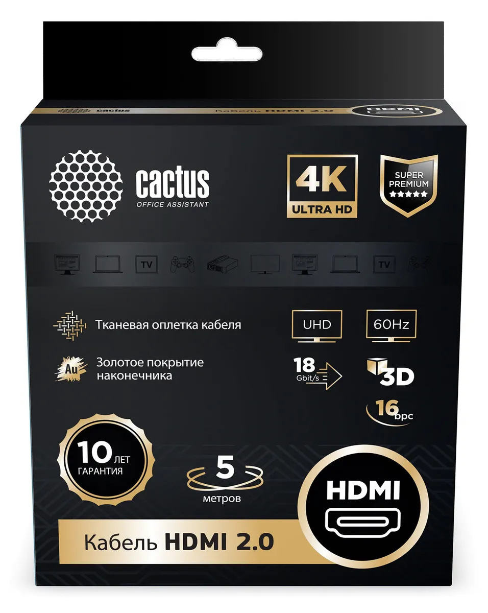 | Кабель аудио-видео Cactus CS-HDMI.2-5 HDMI (m)/HDMI (m) 5м. позолоч.конт. черный | ОТКАЗ_ТРТС RU ..ОТКАЗНОЕ | 10.01.2023 | 10.03.2026 |
