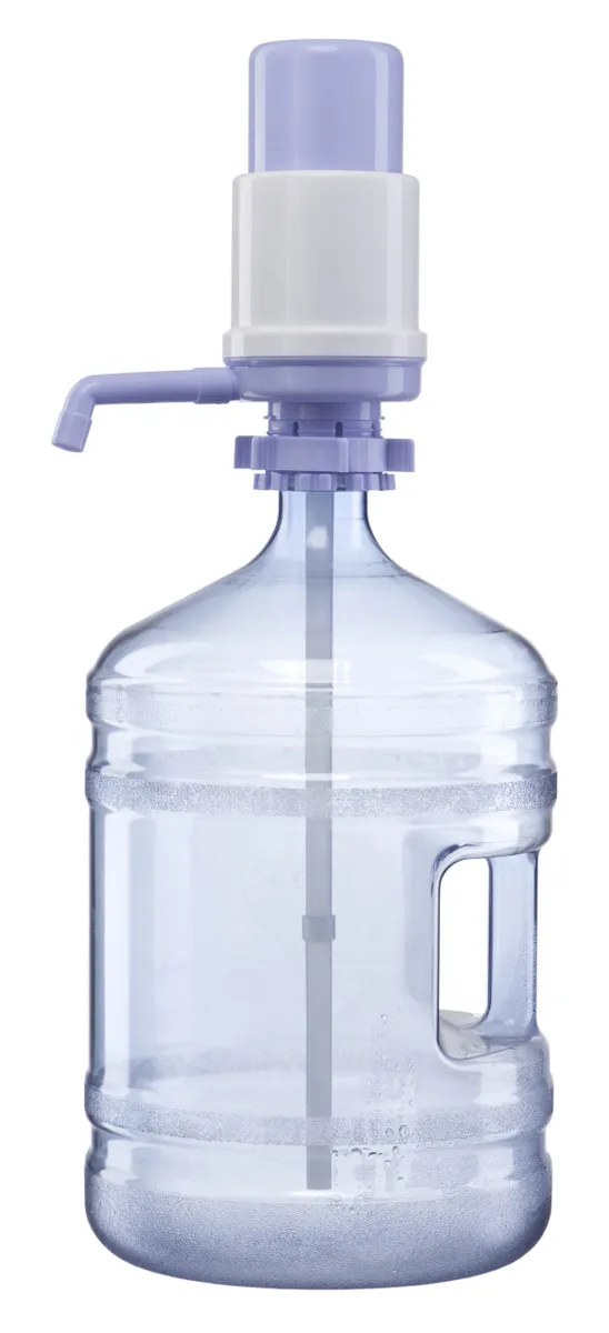 Самое простое устройство для розлива воды комнатной температуры. Надевается прямо на бутыль. Жёстко фиксируется на бутыли с водой зажимной гайкой. Не требует электропитания. Подача воды осуществляется за счёт создания насосом помпы избыточного давления во -