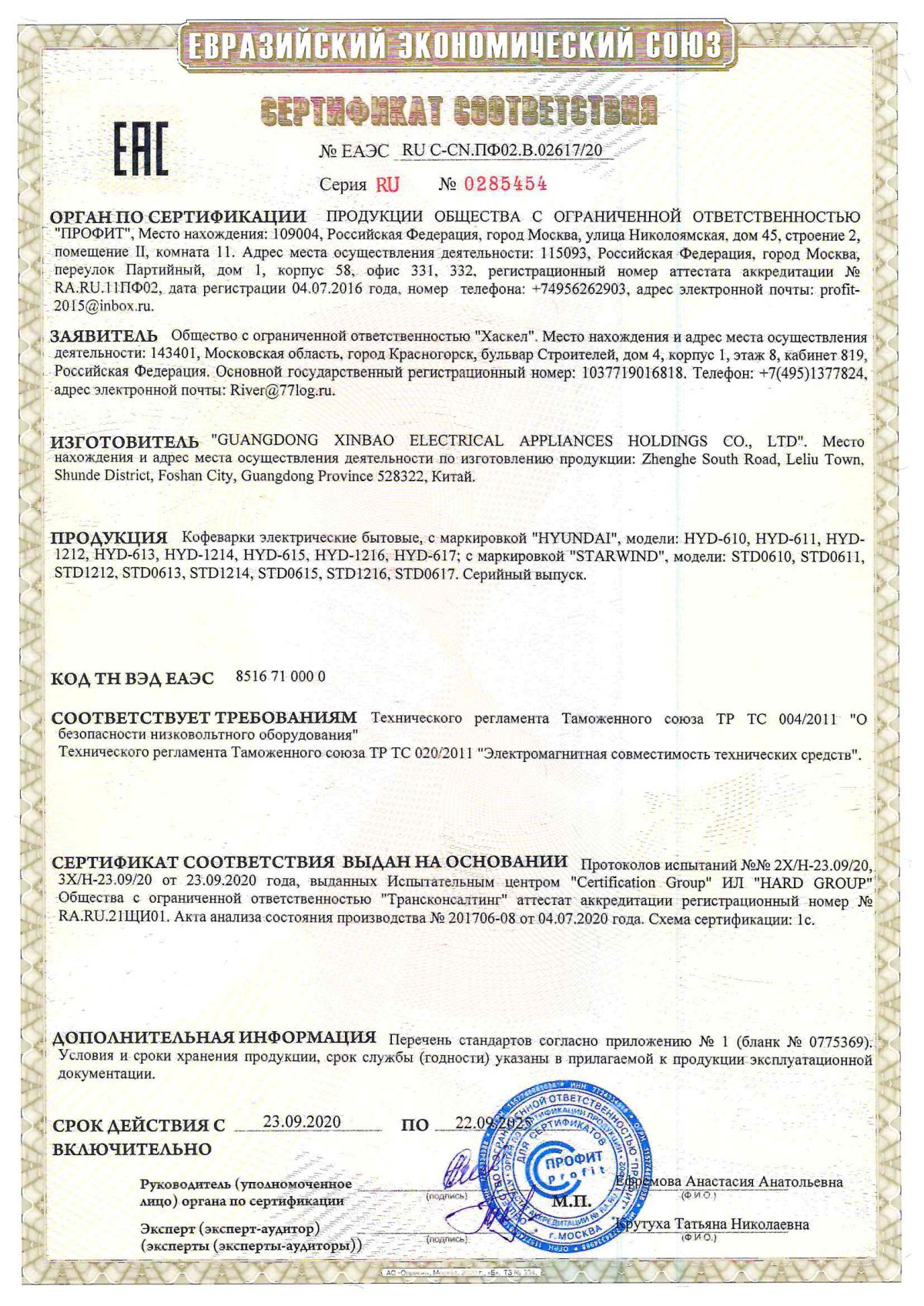 | Кофеварка капельная Starwind STD1212 600Вт черный | ЕАЭС RU С-CN.ПФ02.В.02617/20 | 22.09.2020 | 21.09.2025 |