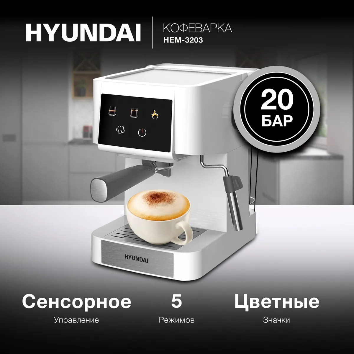 Кофеварка рожковая Hyundai HEM-3203 1000Вт белый/серебристый