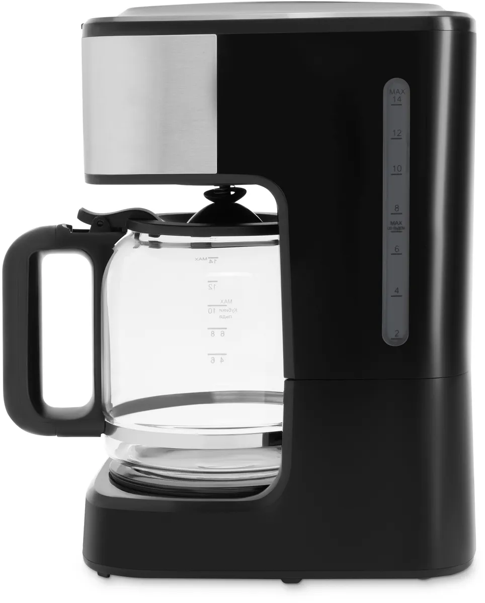 Сенсорное управление для установки количества порций и таймер отсрочки старта. Автоматический подогрев приготовленного кофе, многоразовый нейлоновый фильтр, противокапельная, мерная ложка в комплекте. -