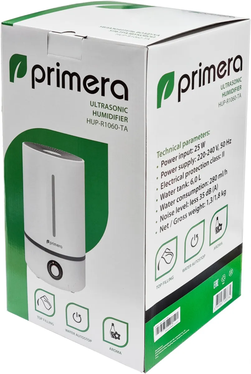 Увлажнитель воздуха Primera HUP-R1060-TA 25Вт (ультразвуковой) белый (HUP-R1060-TA)