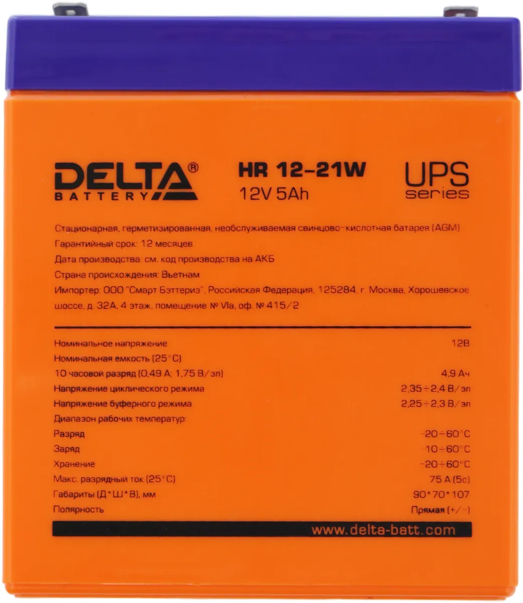 | Батарея для ИБП Delta HR 12-21 W 12В 5Ач | Д RU CN.РА01.В.35891/23 | 13.09.2023 | 11.09.2028 |