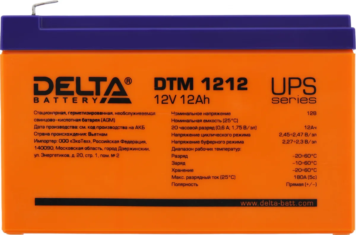 Свинцово-кислотные аккумуляторы Delta серии DTM изготовлены по технологии с абсорбированным электролитом (AGM). В батареях этой серии применена более совершенная конструкция решеток из особо чистого сплава свинца, что увеличивает срок службы и улучшает ра -