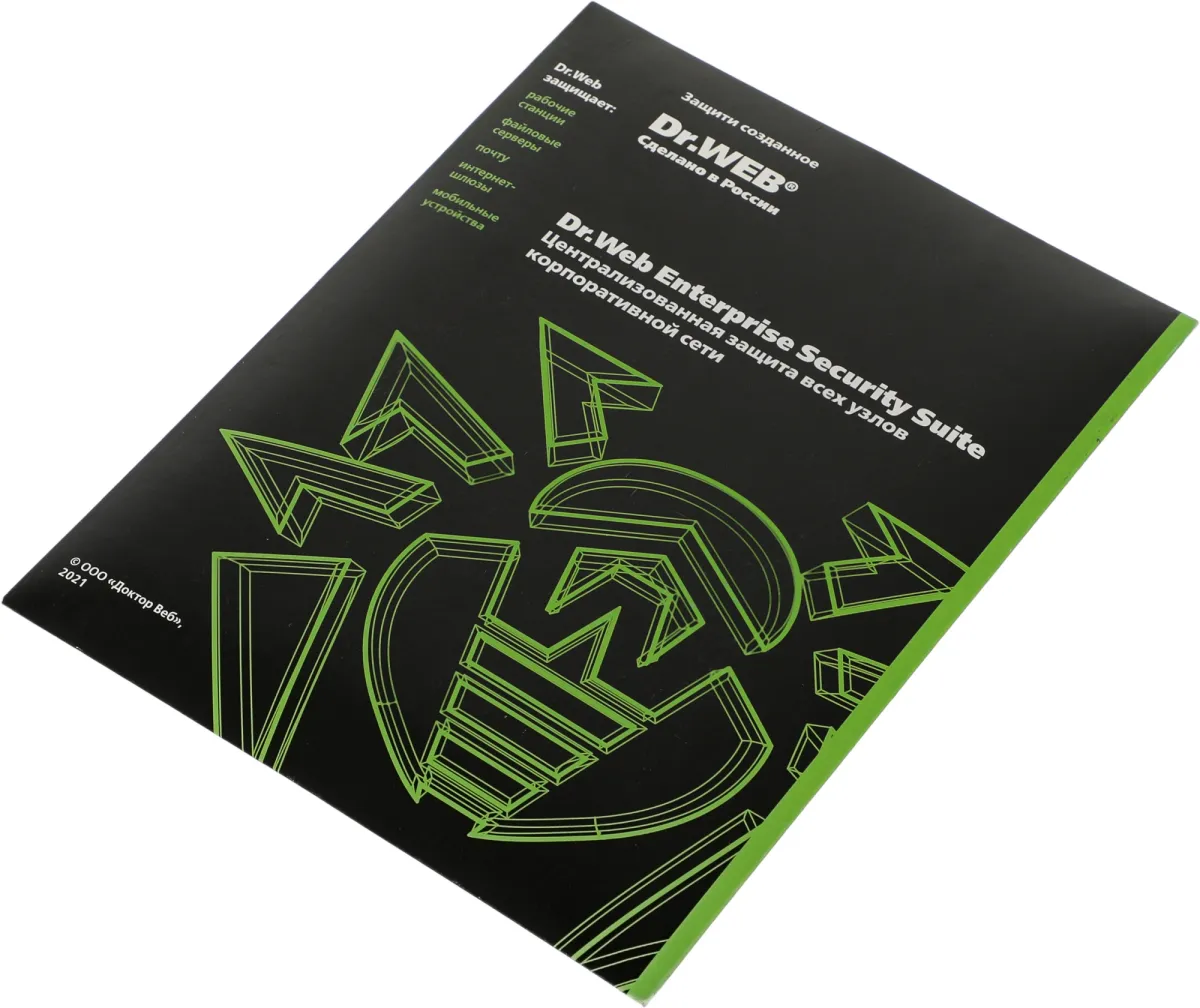 Комплектация: фирменная картонная коробка Dr.Web, DVD-диск с дистрибутивами сертифицированных программ Dr.Web Enterprise Security Suite в фирменном конверте, формуляр. -