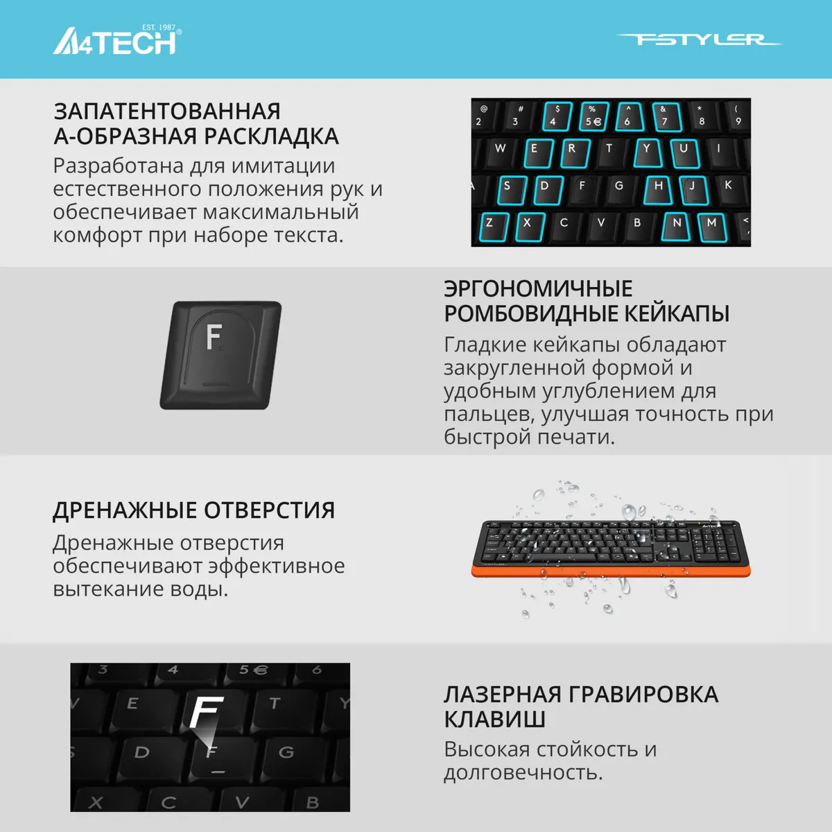 Клавиатура A4Tech Fstyler FKS10 черный/оранжевый USB (FKS10 ORANGE)