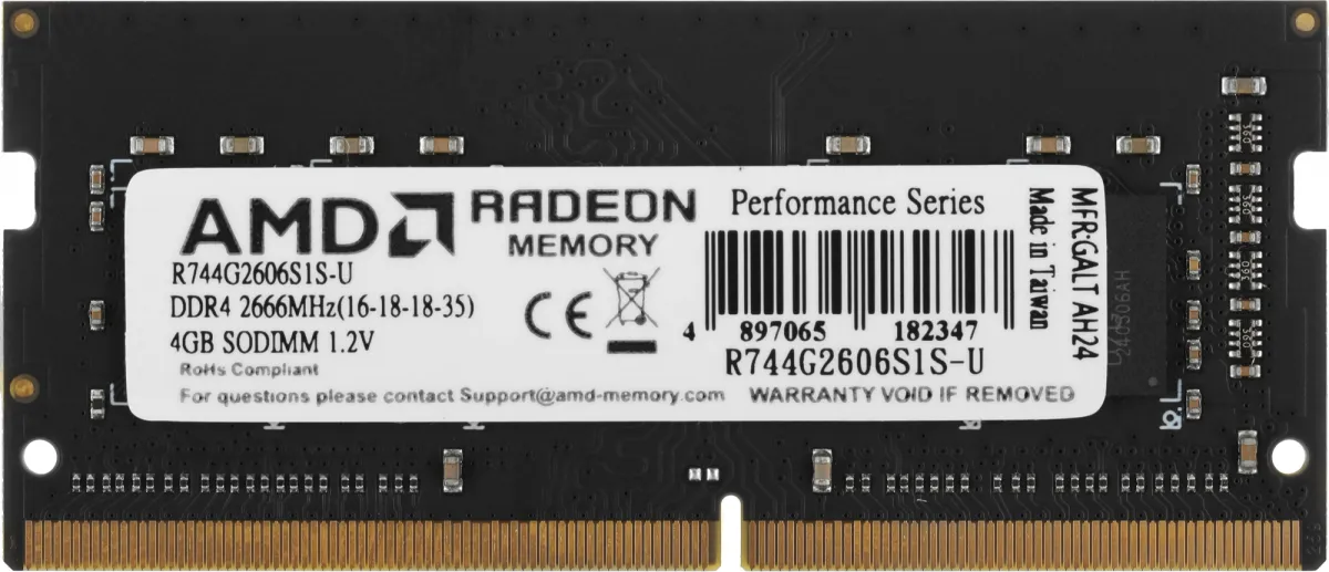 Память DDR4 4Gb 2666MHz AMD R744G2606S1S-U Radeon R7 (R744G2606S1S-U)