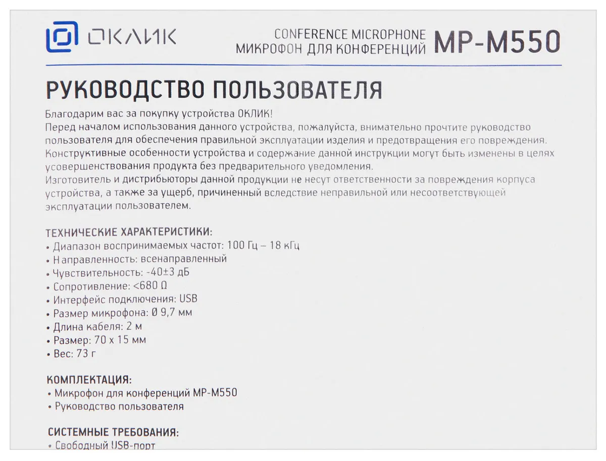 Микрофон проводной Оклик MP-M550 2м черный (1529056)