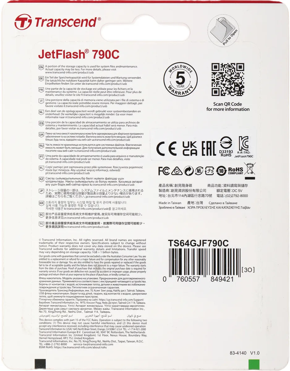 Флеш Диск Transcend 64Gb Jetflash Type-C 790С TS64GJF790C (TS64GJF790C)