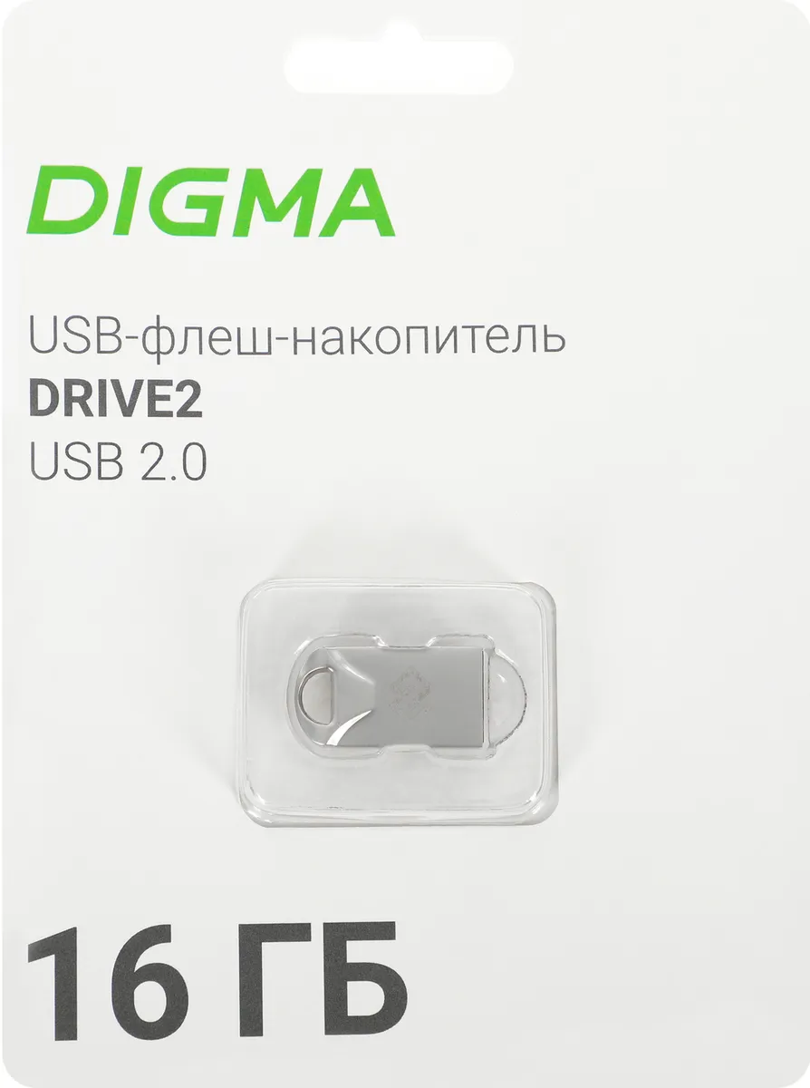 Флеш Диск Digma 16Gb DRIVE2 DGFUM016A20SR USB2.0 серебристый (DGFUM016A20SR)