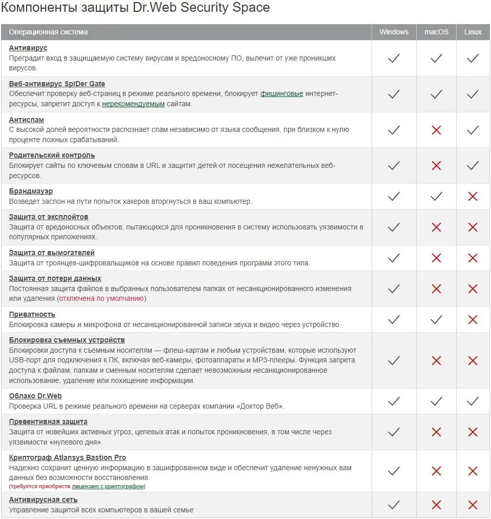 6 программ Dr.Web в одной коробке! Dr.Web Security Space для Windows Dr.Web Security Space (для macOS) Dr.Web Security Space (для Linux) Dr.Web Security Space (для Android) Dr.Web CureIt! Dr.Web LiveDisk -