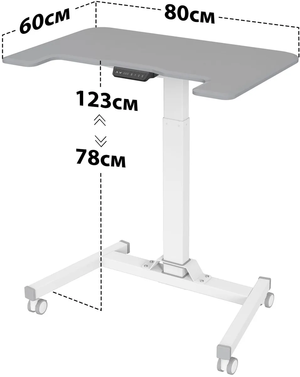 Стол с электроприводом. Хранение 3 запрограммированных значений, датчик от столкновений, термозащита, наличие 4 колес обеспечивает маневренность, 2 колеса со стопором, для придания устойчивости. -