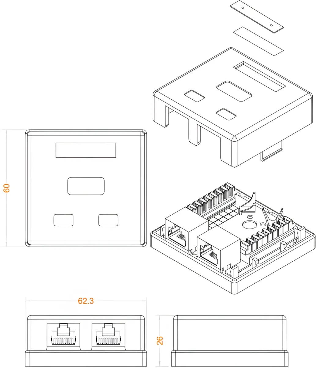 Розетка Hyperline SB1-2-8P8C-C6-SH-WHRJ45 2 кат.6 FTP бел. (упак.:1шт) (SB1-2-8P8C-C6-SH-WH)