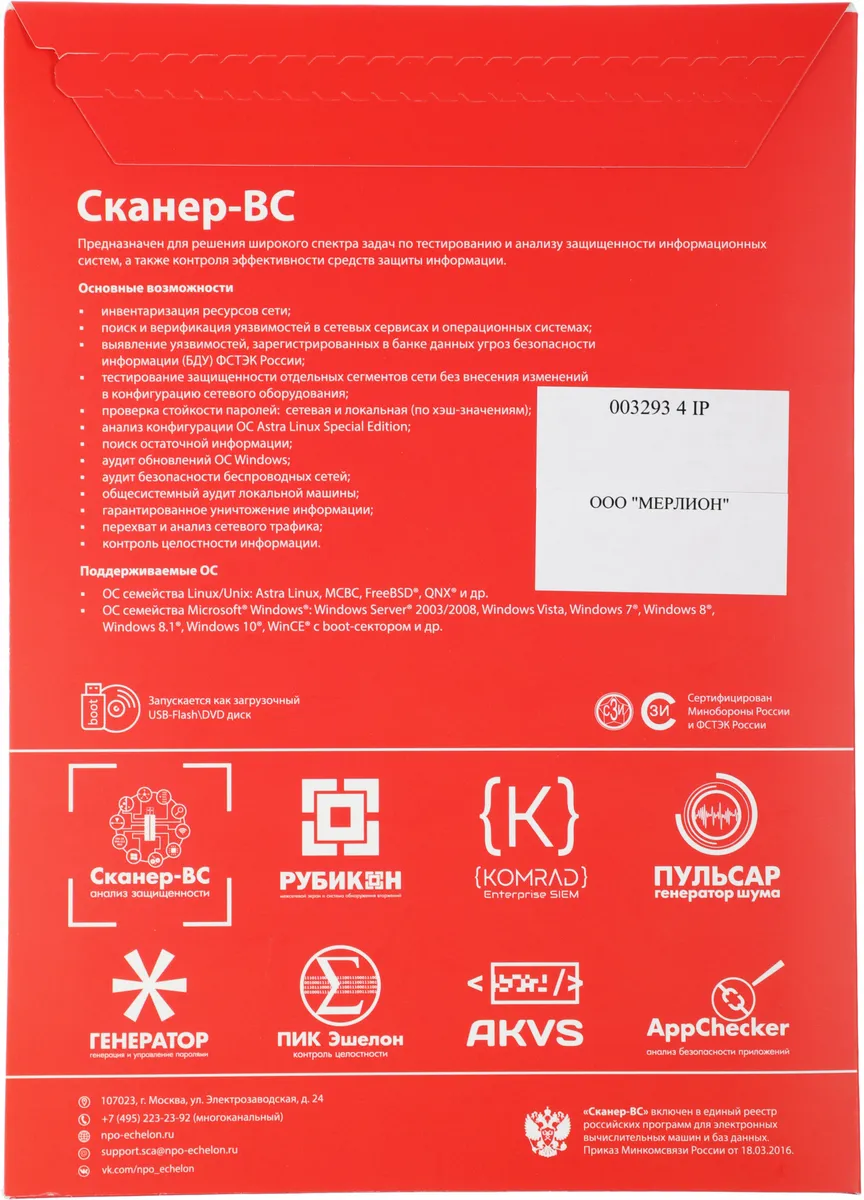Программное Обеспечение Эшелон Средство анализа защищенности Сканер-ВС лиц. (SCANER-VS-5-04-F)