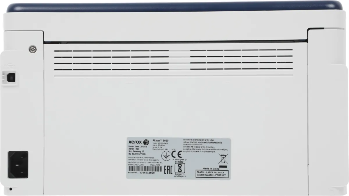 Принтер лазерный Xerox Phaser 3020v_bi A4 WiFi белый | НИП KZ .ФСБ.0000009284 | 13.11.2024 | 30.12.2031 |