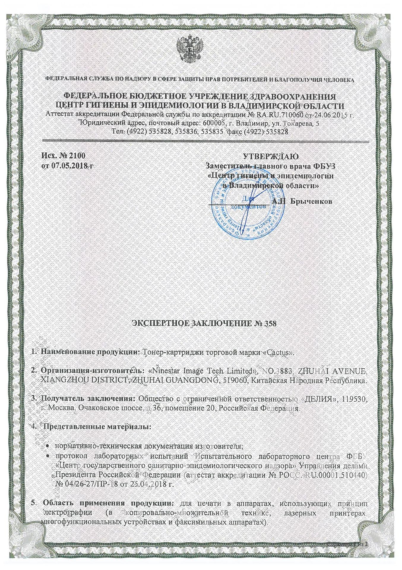 ГИГ 358 | 06.05.2018 | 06.05.2028 |
