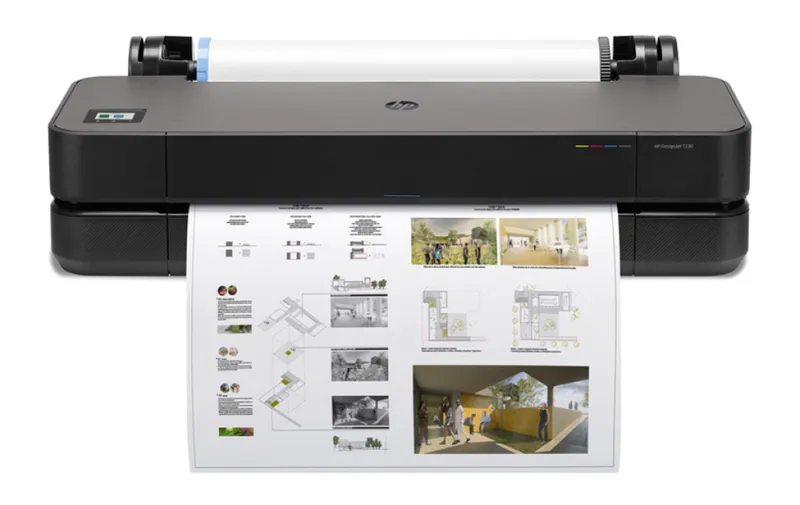 Принтер HP DesignJet T230 (24-дюймовый), печатающая головка, пробные струйные картриджи, краткое справочное руководство, инструкции по настройке, кабель питания -