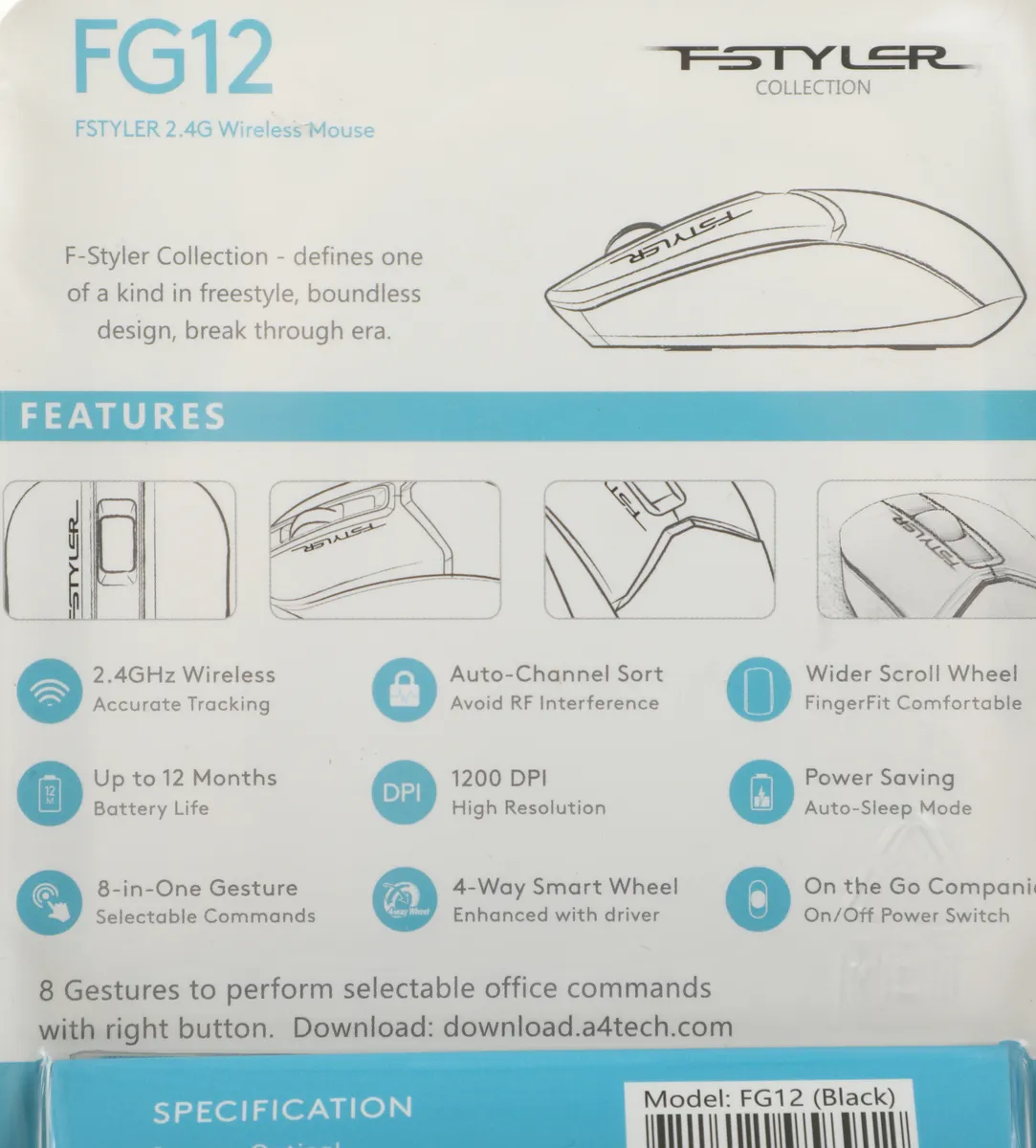 Мышь A4Tech Fstyler FG12 черный оптическая (1200dpi) беспроводная (FG12 BLACK)
