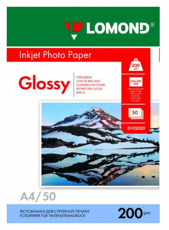 Фотобумага Lomond 0102020 A4/200г/м2/50л./белый глянцевое для струйной печати (0102020)