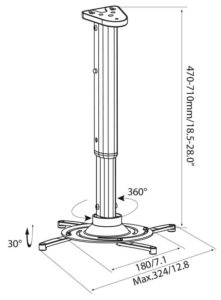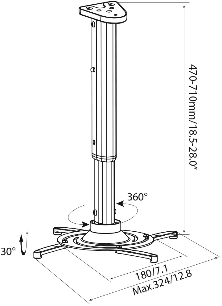 Инструменты в комплекте; Возможность быстрого снятия; Установочные отверстия: 8-30.7 см. Выдвижная штанга сделана из алюминия, остальные части корнштейна из стали. -
